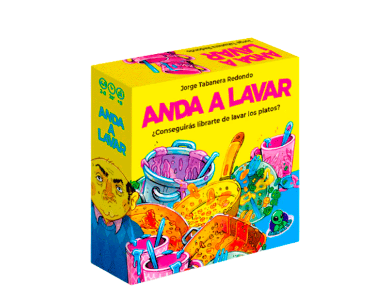En Anda a Lavar el centro de la mesa se convierte en el lavaplatos y nuestro objetivo será intentar acumular el menor número de loza sucia. En cada turno iremos colocando loza sucia, hasta que no puedas colocar nada y no te quede más remedio que lavar. ¡Las risas están aseguradas!
