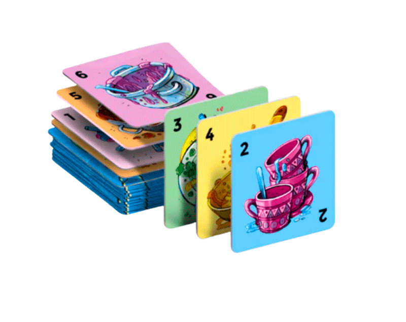 ¿A quién le gusta lavar la loza? Juega bien tus cartas, porque si no te tocará lavar todo lo que haya dejado el resto ¡Lavar nunca fue tan divertido!