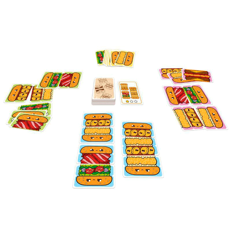 ¡Cada jugador tiene su propio set de ingredientes para hacer hamburguesas! Los jugadores compiten para organizar sus cartas de ingredientes de manera correcta para recrear la hamburguesa pedida. ¡Un juego divertido para ejercitar tu velocidad y memoria junto a tus amigos!