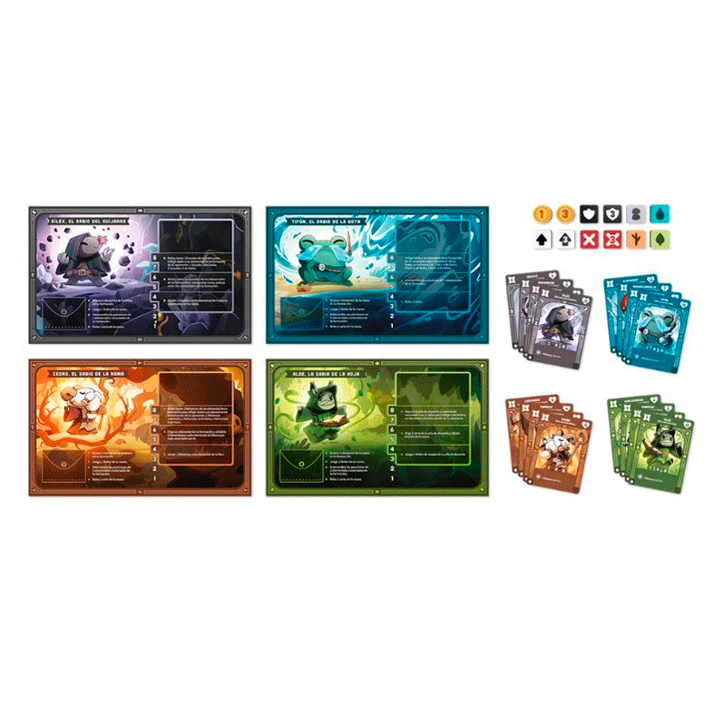 Canaliza la magia del bosque y enfréntate a los Sabios rivales en este juego estratégico de creación de mazos de los creadores de Here to Slay y Criaturas de las Sombras. Invoca a los Guerreros elementales de las facciones del Guijarro, la Gota, la Rama y la Hoja y enzárzate en combate para demostrar tu destreza. En el curso de la batalla subirás de nivel y accederás a habilidades nuevas y extraordinarias, y también a los poderosos Campeones elementales. Cuando todo haya terminado, ¿te habrás hecho con la victoria?