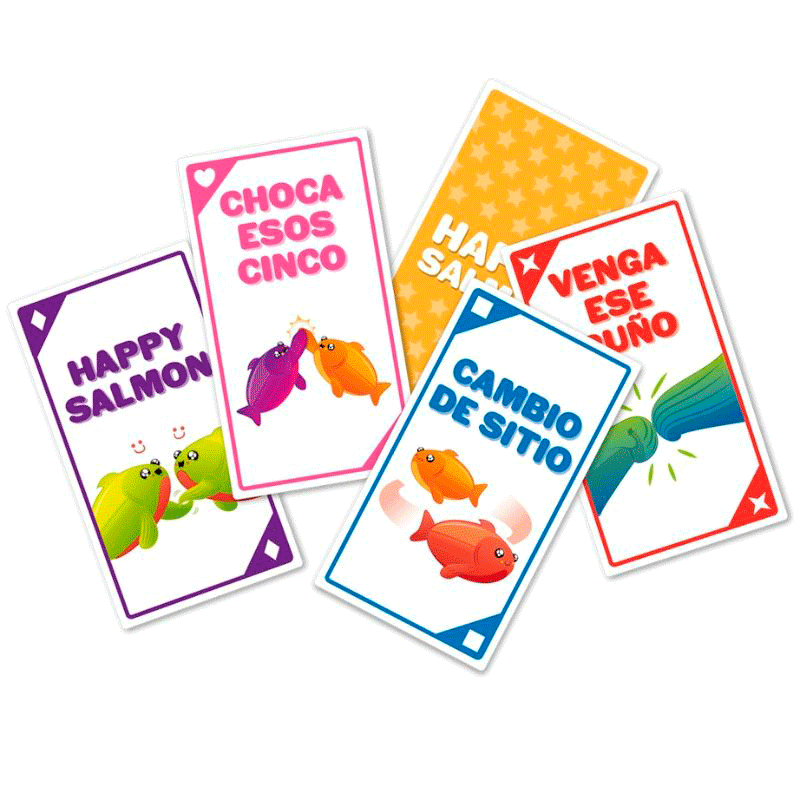 Happy Salmon es el vertiginoso juego de cartas que hace que, durante apenas dos minutos, nadie pare de moverse y reír.