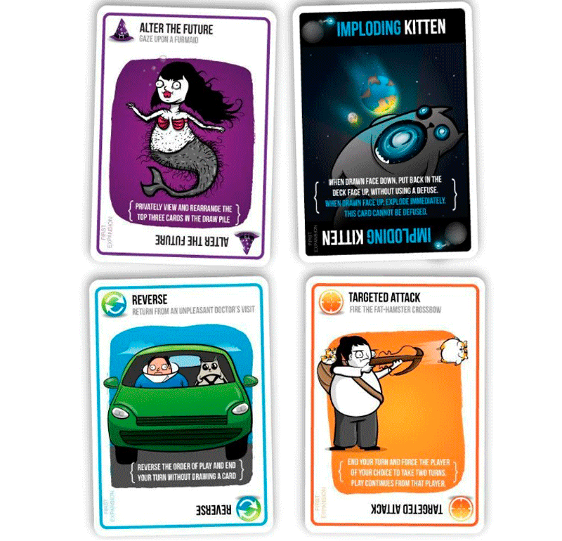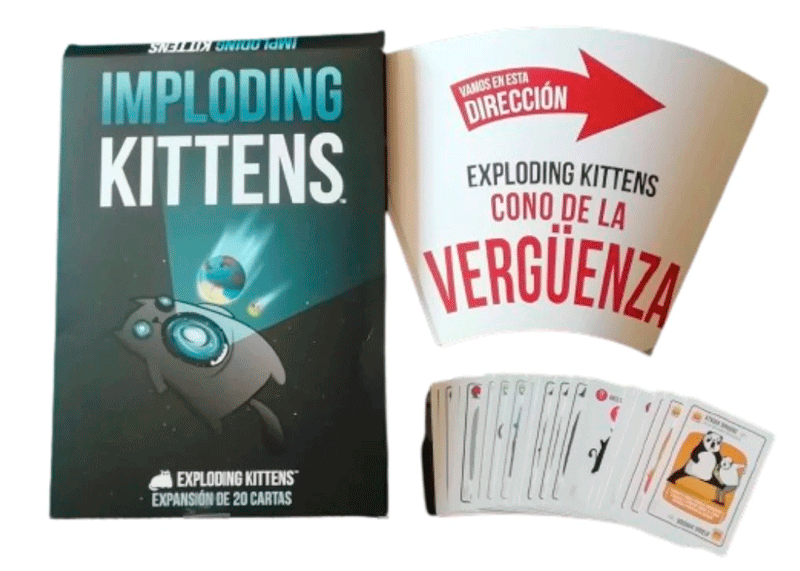 ¡Esta es la primera expansión de Exploding Kittens! Incluye 20 cartas nuevas ilustradas por The Oatmeal, expande el mazo inicial de 5 a 6 jugadores, e Incluye un “cono de la vergüenza” de tamaño real que indica el orden de turno.