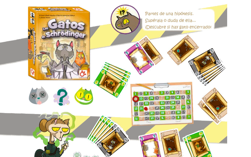 En Los gatos de Schrödinger, deberás crear tu propia hipótesis sobre qué hay oculto en todas las cajas en juego y, especialmente, en qué cantidad. Cada hipótesis, deberá supera a la anterior. Lo malo es que solo conoces ¡las cartas que tienes en tu mano! Así que, tendrás que analizar la situación con inteligencia o «colarle» un farol a tus compañeros. Pero, si alguien duda de tu afirmación, se revelarán todas las cartas y se comprobará tu hipótesis. En ese momento, mejor que estés en lo cierto, ¡o estarás fuera del juego!